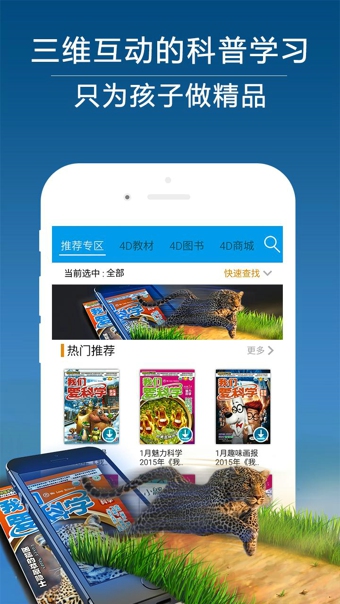 【三维互动的科普教学】与《我们爱科学》杂志合作,采用AR及三维实时渲染等世界最新技术,将平面图像神奇变“活”!3D虚拟动画与实景空间融合,营造三维空间交互学习,寓教于乐,带给孩子们前所未有的学习体验,激发孩子的想象力、强化认知记忆。