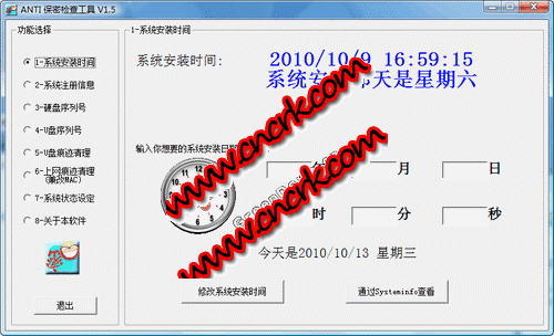 保密检查工具 V1.5 简体中文绿色免费版 1.能够任意修改系统安装时间(不是系统时间哦)