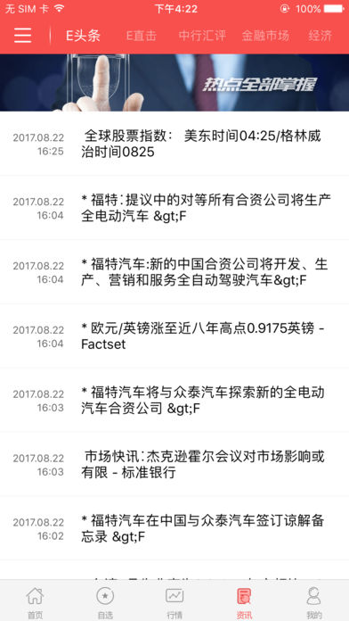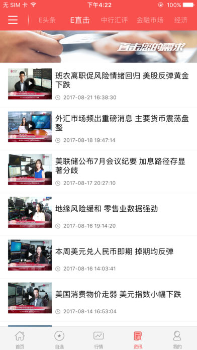 中行E融汇的开发参考了专业交易员使用的交易终端,为客户提供随时随地把握交易机会的“掌上交易室”。持有中国银行借记卡的投资者可以下载使用APP“E融汇”。E融汇首期已经接入外汇双向宝、期权、贵金属双向宝的交易功能,预计3月末将接入黄金T+D,并在未来提供更多交易品种,用户在一个客户端上即可实现“一个账户、多种方式、投资全球”。【软件特色】