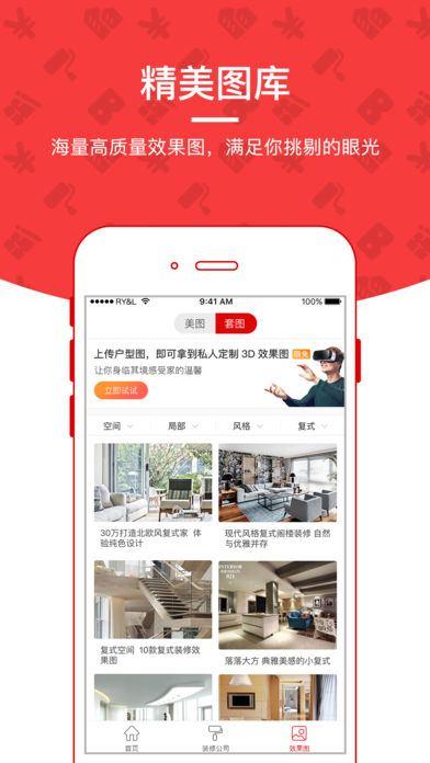 海量高质量效果图,多场景,多区域,挑选方式多样化。总能找到你喜欢的家的样子。