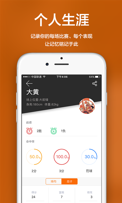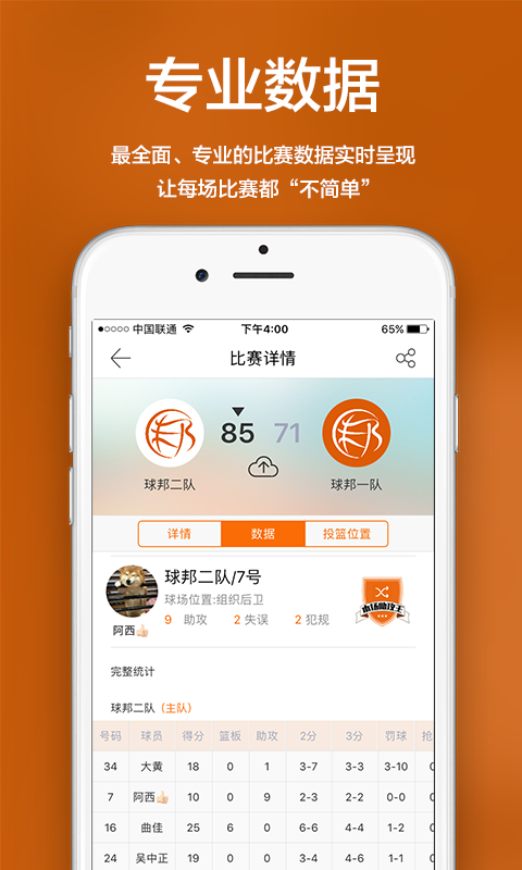 用每个数据记录你的篮球生涯。让你享受NBA级别的数据统计服务。