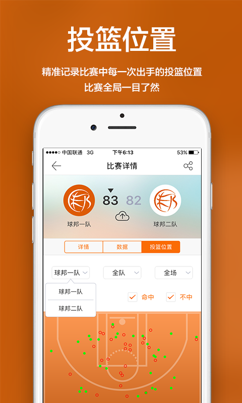 记录你参与的每场篮球比赛,让成为历史的比赛在“球邦”铭记。