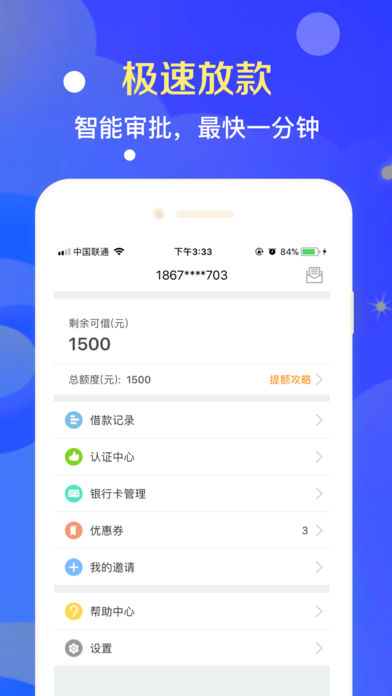 4、 系统认证,急速到账。