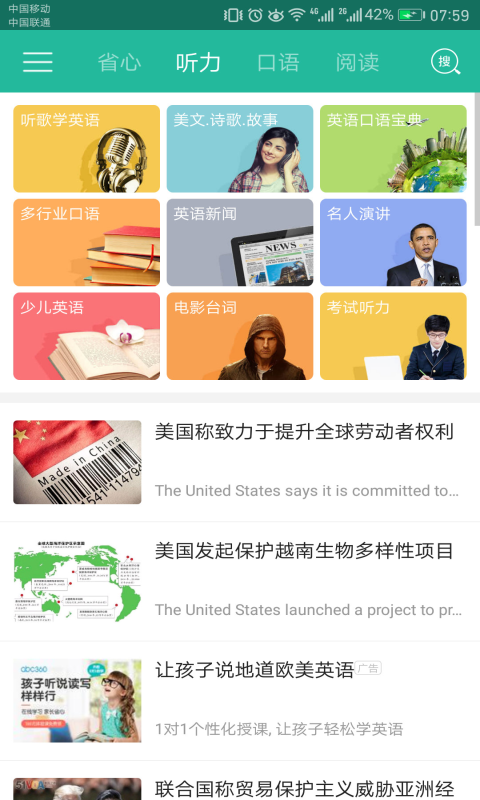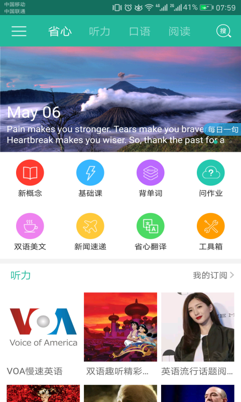 英语话题讨论,口语练习课程,每日一句朗读智能打分