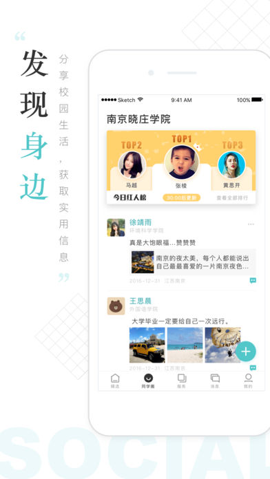 分享学习生活,谈天说地结识好友,问题求助失物招领——只属于我们学校的“同学圈”