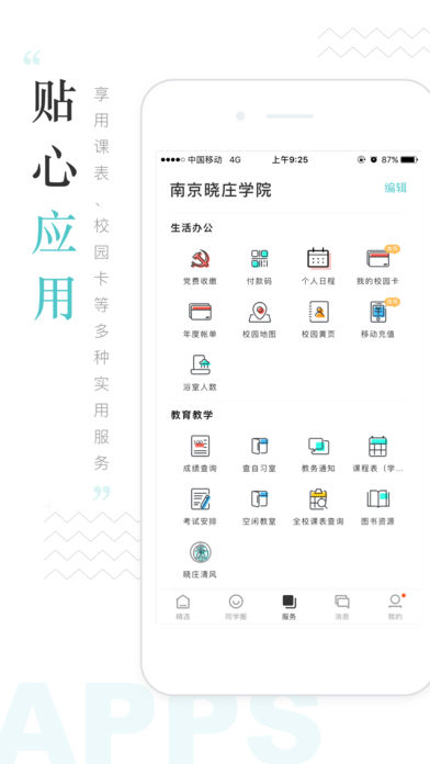 40余种实用校内应用,涵盖学工应用、教务信息、生活服务、学习工具等方面