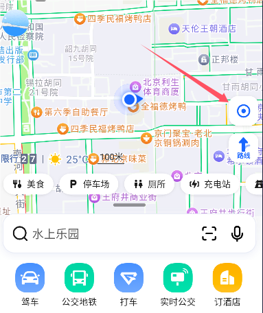 1打开高德地图后,找到界面下方的圆点图标并点击,即可将导航视角调整为2D模式。