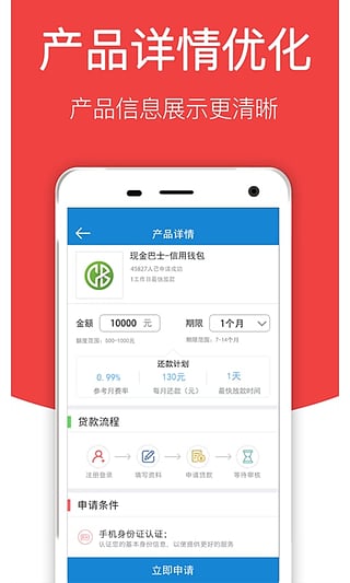 市场上的贷款产品看得眼花缭乱,无从下手?容易借的专家团队比较市场上万款贷款产品,挑选各种贷款机构的优质贷款产品,结合用户的需求进行匹配。纯线上操作一键申请,方便快捷!