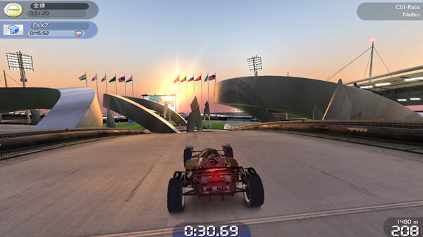 《赛道狂飙 国家永恒》(TrackMania Nations Forever)是由Nadeo公司制作的享誉全球的赛车类游戏赛道狂飙的2008年的最新成员。游戏除了有精美的画面、简单优秀的操作和高度自由极富激情的急速体验之外,还允许玩家使用自己喜欢的音乐、标签,甚至支持玩家自己制作的车辆模型。