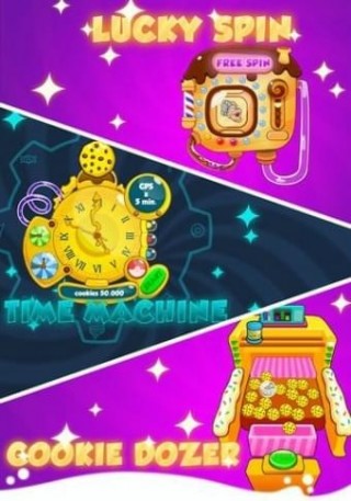 -会有两个强力的加速器在你手里:幸运旋转(每日免费旋转)还有时间机器,用来前进时间更加加快你的饼干生产。