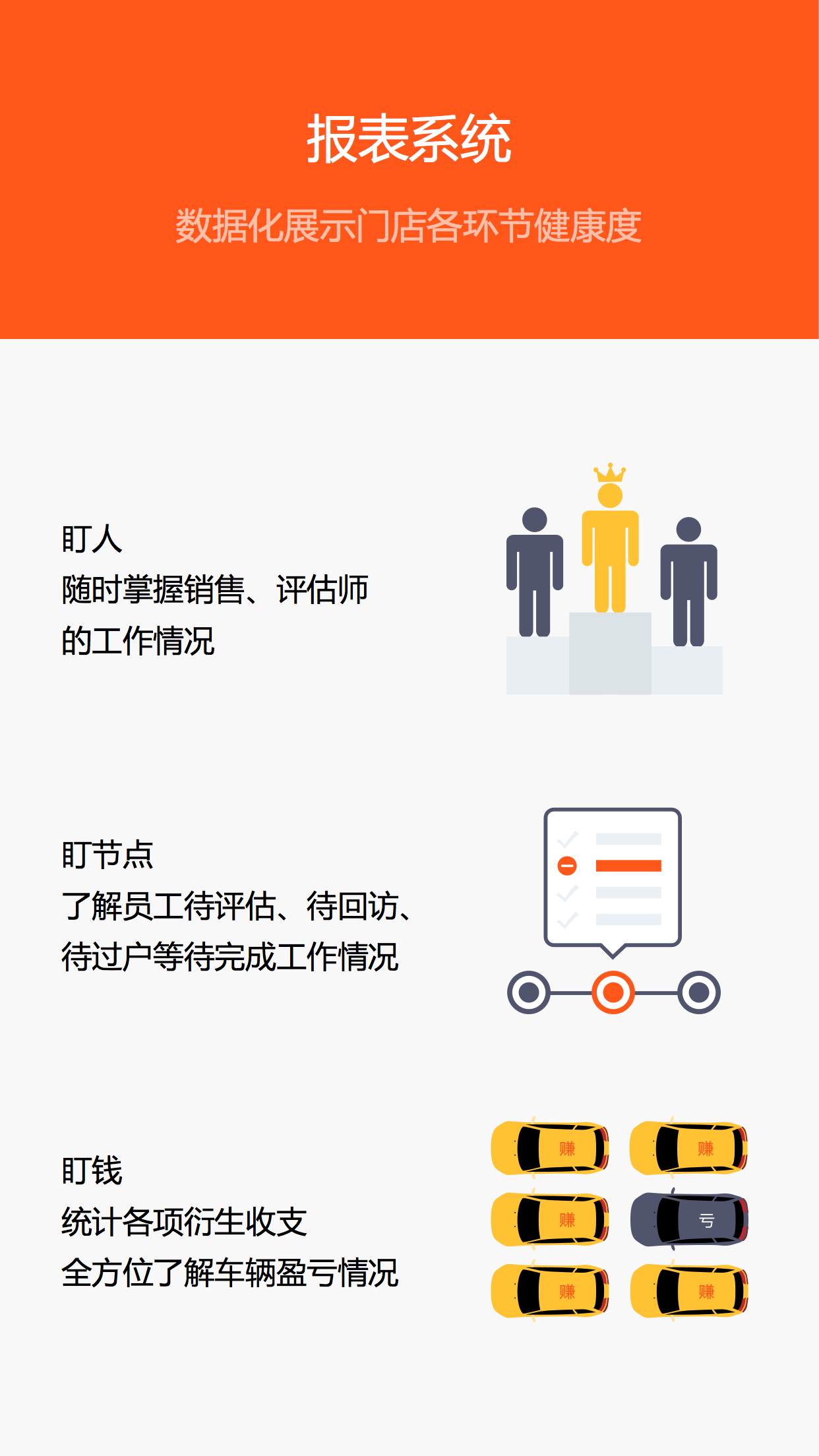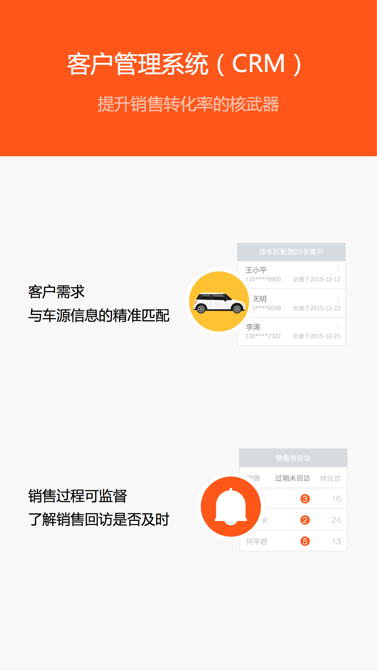 1、评估师系统便捷的评估信息录入,并且包含大数据车价参考,还可以将车型与潜在客户快速匹配;2、销售管理将客户的信息落到公司系统中,经理可以随时查看销售人员工作情况;系统会自动记录销售回访数据,并将客户需求车型与库存做匹配;
