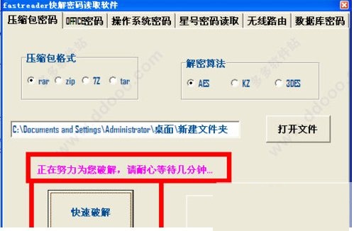 fastreader快解密码读取软件是一款非常优秀的压缩文件密码破解工具,fastreader中文版能够对最常见的rar、zip、7z等压缩格式文件进行密码破解,并且不论压缩包密码长短,几分钟就可以破解一个压缩包文件,让你再也不用到处去问找密码了。