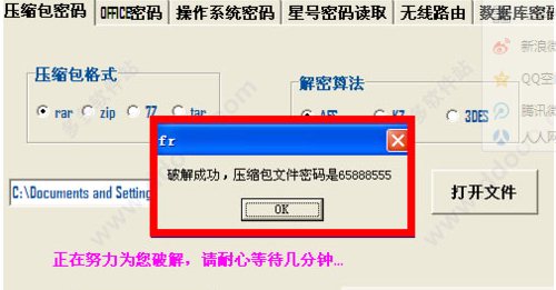 更换算法后,重新点击“快速破解”即可,等待了2分钟,看到了破解成功的提示就好了。