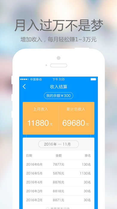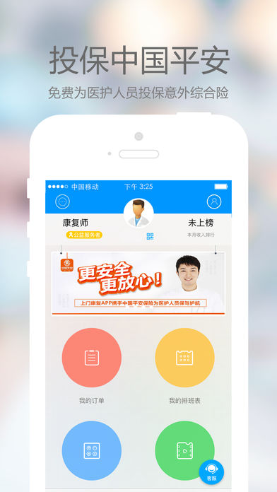 通过平台为用户提供上门康复服务,每月增加收入1-3万。用户历史订单和代服务订单查询,自由选择时间开放上门服务,可查询上月收入、累计收入、收入明细记录,还可通过教学培训最新康复视频自学。