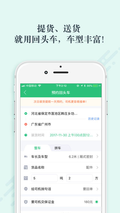货主通过省省回头车预约回头车、回程车、返程车、顺风车提货、送货,大、小货车都有,车型丰富,同城、跨城运输都可以。运费比市场价格便宜30%,货主自由选择合适的司机进行提货、送货。