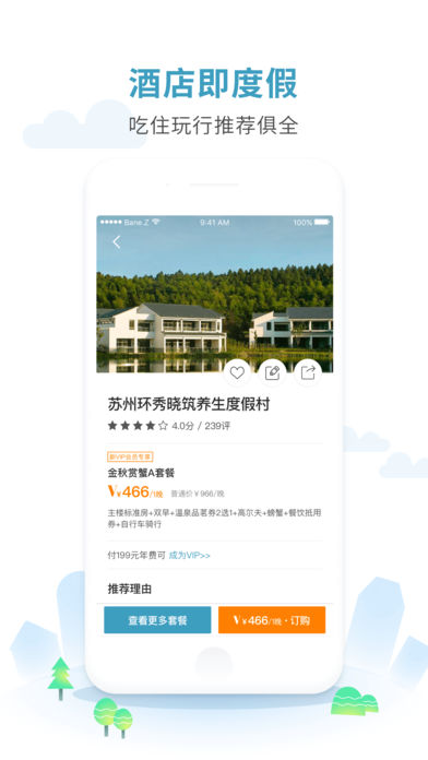 随着人们工作生活节奏的加快,时间越来越成为奢侈品,难得的休息时间,当然要充分利用好。 每到节假日,很多人不想再舟车劳顿,只想在附近找个环境好、舒适的度假酒店放松下。 然而,大部分的酒店预订服务商主要面向的是商旅用户,休闲度假用户想要找到合适的酒店很不方便。周末酒店正是针对这样的休闲度假需求,帮助大家便捷地发现和预订周边有特色、好口碑、价格优惠的酒店。区别于其它酒店预订服务商,我们提供以下独特的服务:
