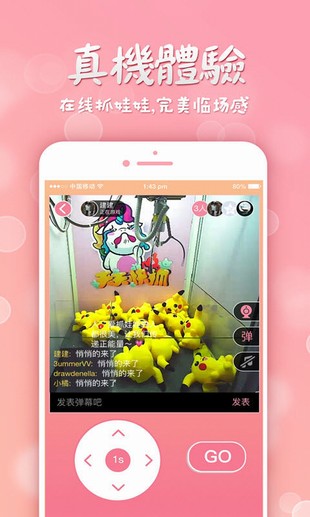 1、 真实娃娃机,线上抓取,实景体验直播线下娃娃机,手机线上操作,抓到娃娃那一瞬间的幸福感,是无法用言语表达的,超实景临场体验。