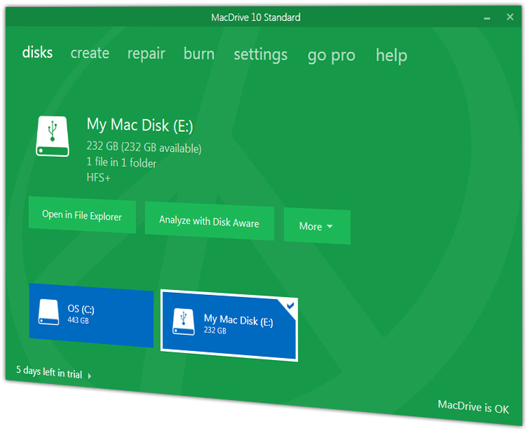 包括软盘、Zip、Jaz、CD-ROM、CD-R以及硬盘驱动器等。可以通过该软件从Windows 直接访问 Mac 磁盘。打开、编辑、保存、复制文件,MacDrive 10还支持在Windows 下格式化Mac磁盘等。MacDrive 是一款非常有有用的软件,用在 Win 系统下研究 Mac (例如:精简原版),那真是太方便了有木有!【使用说明】