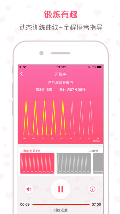 1. 个性化、循序渐进的锻炼方案详细全面的盆底测试,为你生成专属测试报告;