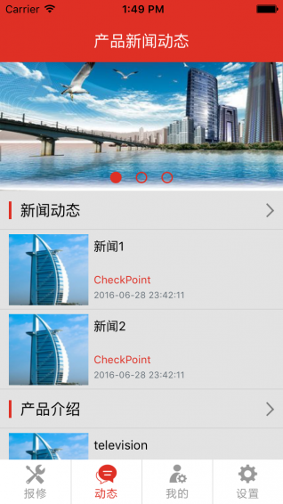 2、新闻产品功能:推送Checkpoint的动态新闻及产品信息。