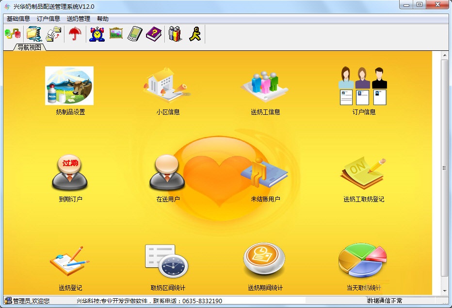兴华奶制品配送管理系统是一款专为奶制品制售点所提供的奶制品配送管理系统软件。该软件拥有奶制品信息、小区信息、送奶工信息、订户信息、取奶登记、账户结算、送奶等级以及统计等功能管理。