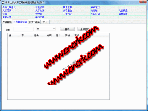 者者之家区号邮编查询器1.0采用易语言开发,完全免费发布,任何人都可以任意使用。 主要功能包括取号邮编查询,计算器和万年历等功能。其他功能正在完善中。 区号邮编查询可以让用户任意查询取号邮编