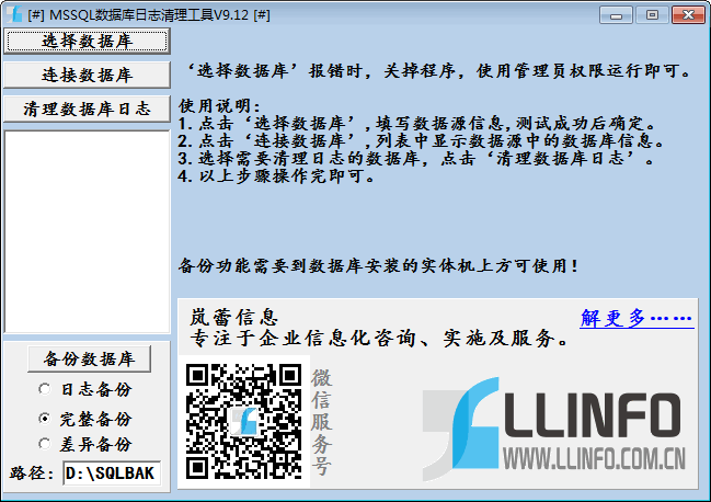 MSSQL数据库日志清理工具是一款实用的数据库日志清理软件,支持SQL多个版本,同时支持备份数据库日志,对于数据库开发的用户是一款必备的工具之一,使用时需要一管理员权限运行,有需要的朋友欢迎下载使用。【使用说明】