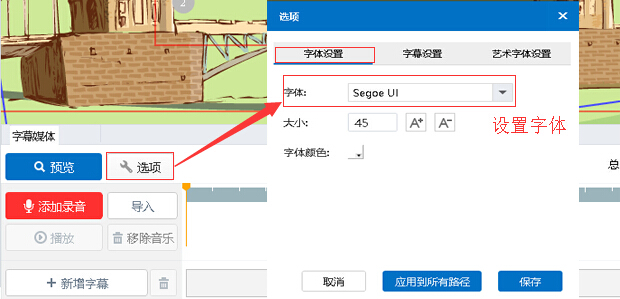 1.设置字幕字体