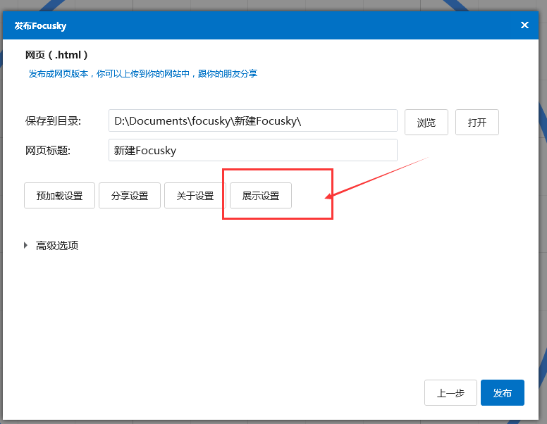 如何在focusky中发布输出文件格式?