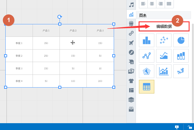 1) 选中图表,然后点击“编辑数据”进入图数据界面