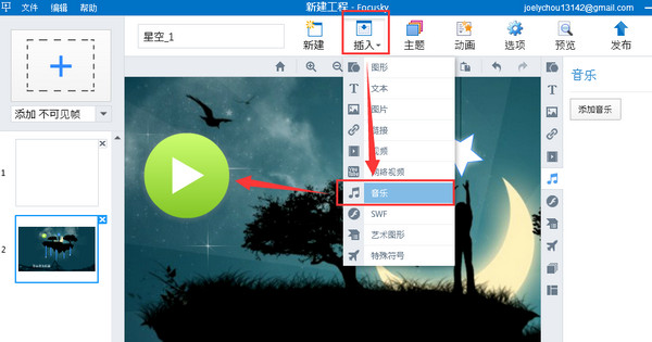 如何在focusky演示文稿中添加声音播放器?