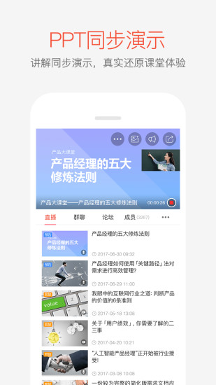 掌门-绿色直播、价值直播的倡导者。掌门以社群为基础,以直播为工具,以用户场景为中心,让传统商业“生产、传播、交易”的三大环节合并在一个场景下实现。简单方便的为用户构建了一个完美的互联网+新生态。实时直播教学,即时聊天互动,直播连线讨论,PPT同步演示,社群话题分享,知识商业变现。