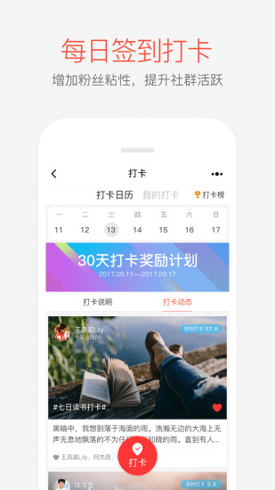 1.【掌门号打卡】增加粉丝粘性、提升社群活跃;