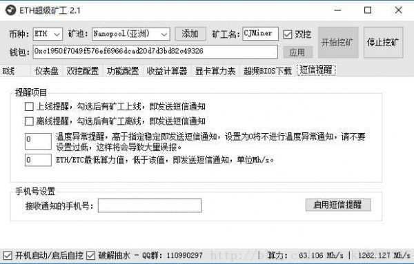 5、内置告警系统,可视化界面,可以一目了然的知道矿机当前状态;