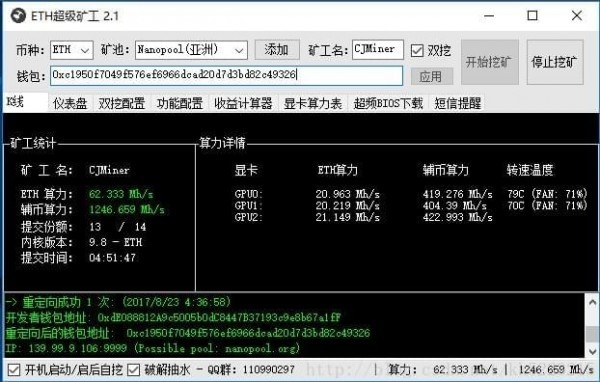 注意:备用矿池是手动选择,不能自动切换,在矿池炸掉的时候需要手动更换,但是也可以在恢复链接的时候第一时间连接上;
