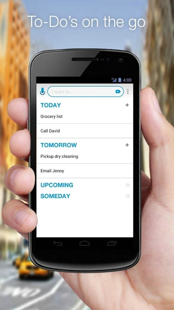 Any.DO是一款功能超过以往同类应用的免费效率应用,能帮助用户在手机上进行日程管理(GTD)。和所有的任务管理应用一样,Any.DO也支持任务添加、标记完成、优先级设定等基本服务。除此以外,Any.DO还提供通过语音输入创建任务,通过手势进行任务管理等服务,如通过拖放分配任务的优先级,通过滑动标记任务完成,通过抖动手机从屏幕上清除已完成任务等。