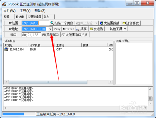 扫描内网中的ip,点击:”扫描一个网段“ipbook就开始在这个网段下开始扫描