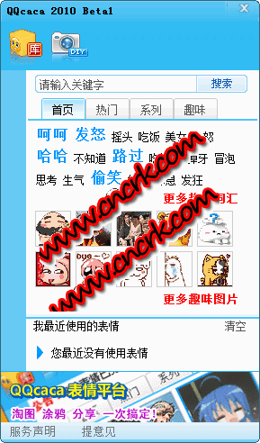 QQCACA汇聚互联网上各类趣味形象表情,提供淘图,涂鸦,分享各项功能于一体免费客户端聊天辅助软件 。
