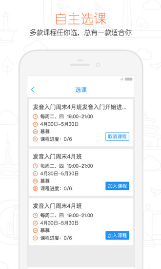 【报名学习超级简单】通过手机即可轻松选择你想报名的学习课程,N1、N2、N4日本语能力考试学习计划,听说读写统统帮你提高。实用日语满足你想学日语的愿望,有趣又实用。日语口语课、1V1口语小课堂,让你轻松和日本人交流。