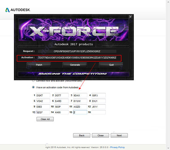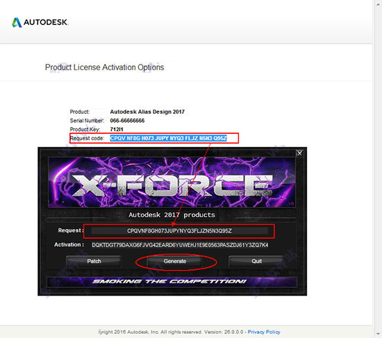 10、将“申请码”复制到注册机的第一项中,点击“Generate”,生成激活码