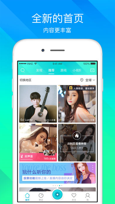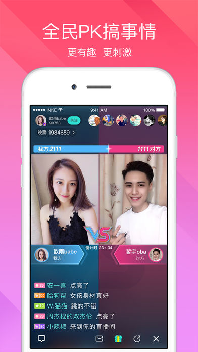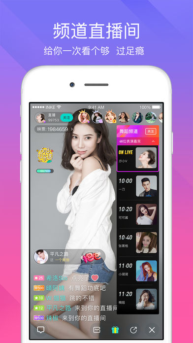 汇集千万粉丝,超过1000个明星艺人,5000个网络红人,10000个大学生,10万个帅哥和美女,来自全球的华人和留学生、无数顶级美女主播全天24小时不间断视频直播,进入直播间与偶像面对面互动,你的ta从未如此真实,如此靠近你