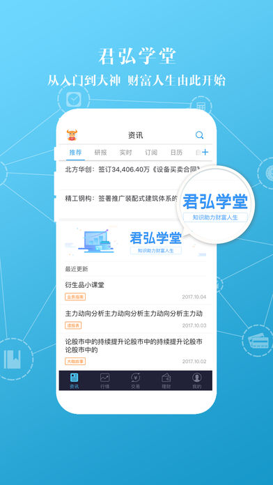 国泰君安应用品牌全新升级,以“国泰君安君弘”品牌继续领跑证券行业互联网金融,始终如一地为广大投资者提供丰富的交易品种、金牌研报资讯、全市场极速行情、策略交易、云服务等一站式投资理财服务,我们秉承诚信、责任、亲和、专业、创新的理念,为您的投资保驾护航。【软件特点】