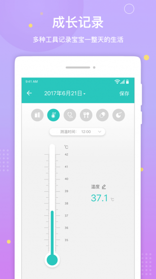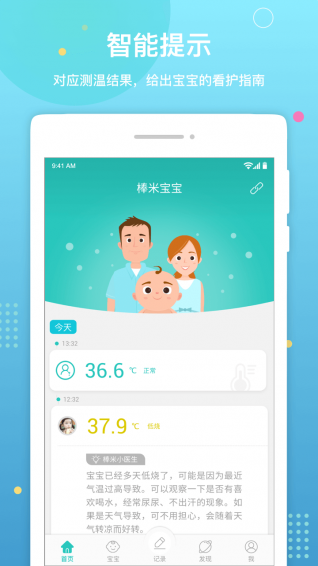 如果发现宝宝发烧,系统会根据发烧状况自动给出看护指南,缓解新手妈妈的慌乱。