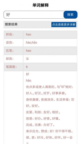 3、超全词库:40万条词语,涵盖现代汉语95%以上词汇,想查的这里都有;