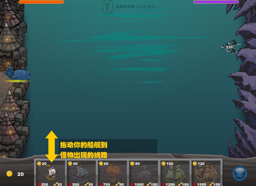 《对战加勒比(Ships Vs Monsters)》是一款很考验智商的策略游戏,一共有6条航道,你要根据敌人派了什么船来决定你上什么船,是出击还是营救落水者!游戏里的技能点也是可以无限重置且免费,你可以每关配置最佳天赋。【操作方法】