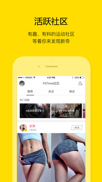 FitTime即刻运动,带给你最好的中文原创健身、瑜伽视频课程和训练计划,给你最接近线下健身房的私教体验,让你把家变成健身房,足不出户享受明星教练的课程,在家轻松减肥、瘦身、增肌、塑形。相信我,你离你想要的马甲线、人鱼线、翘臀、腹肌、瘦腿,只差一个「FitTime」。【软件特点】