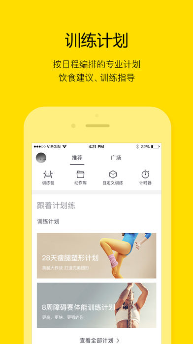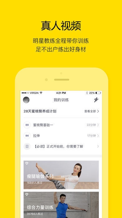 - 包含各种类型的运动类型,减肥、燃脂、瑜伽、普拉提、增肌等课程应有尽有