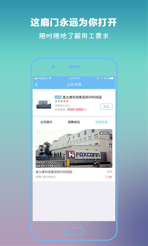 3、任一门,给蓝领员工提供一个企业工厂信息对称平台。打开任一门,直接对话企业工厂,随时随地获取企业工厂即时信息。让蓝领员工不再有获取信息不准确的烦恼。