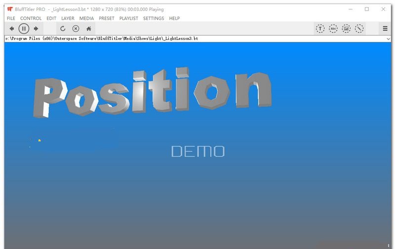 1、blufftitler体积小,特效非常的丰富。2、图层丰富,有摄像机层,光层,文字层,EPS层,图片层,视频层,视频采集层,音频层,等离子层,粒子层,分享遮盖层,模板层,滚动字幕层,共计13种层,不限制层数量。
