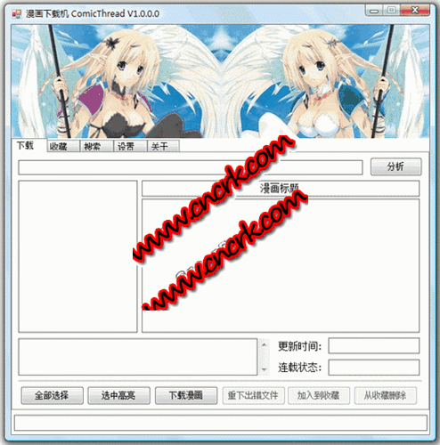ComicThread漫画下载机 V1.0.0.1 简体中文绿色免费版 ComicThread是一个免费的在线漫画下载程序,纯绿色软件,不会修改注册表或向系统目录拷贝文件。集成了在线漫画下载、收藏、自动更新漫画、搜索漫画等功能。ComicThread最大的特点是多线程分析和下载,能一边分析图片链接一边下载,可以显著提高下载漫画的速度。